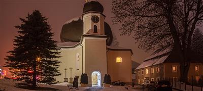 Kostel vybudovaný v letech 1729 – 1732 v barokním stylu. Půdorys šesticípé hvězdy a dvě kopule s hvězdou.