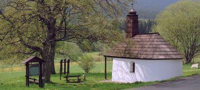 Kostel charakteristický svým šindelovým pokrytím postavený v letech 1824 – 1826 na místě dřevěné kaple Panny Marie Růžencové, která zde stávala od roku 1761.